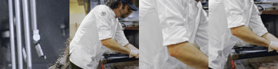 - Two angled front hip pockets and dual utensil/thermometer pockets on left sleeve